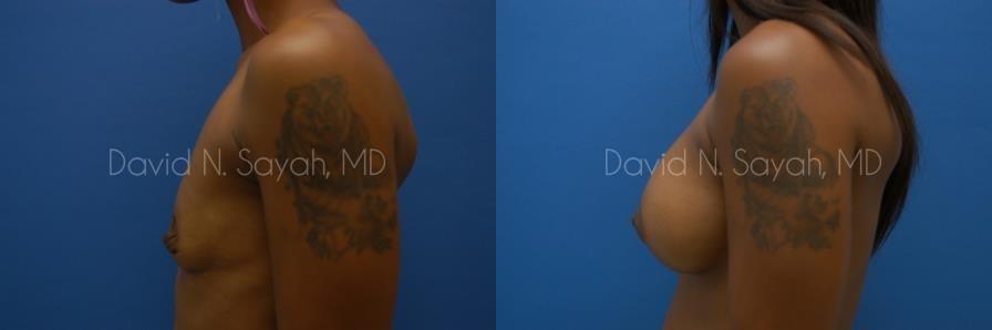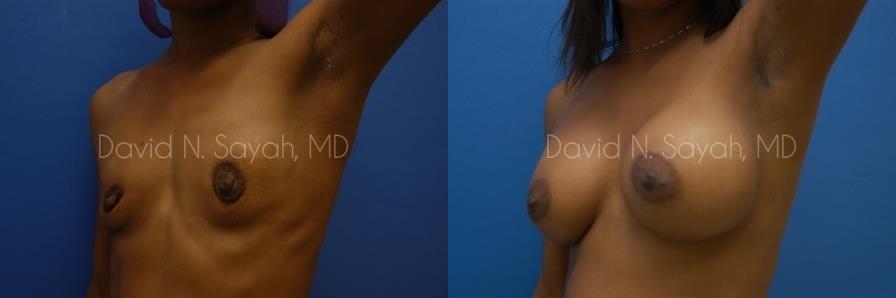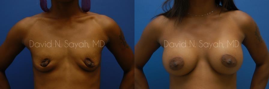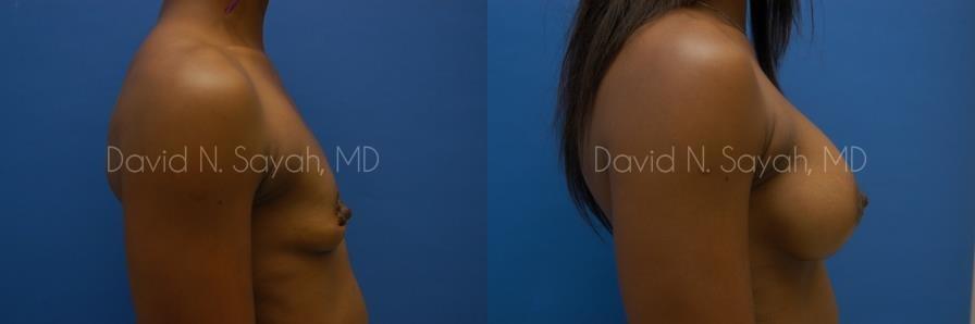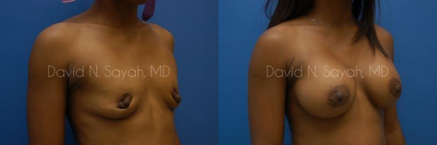 This 31-year-old woman sought a consultation with Dr. David Sayah at our Beverly Hills plastic surgery facility to discuss the details of a bilateral breast augmentation. The patient is a mother of small children and had noticed a dramatic decrease in her breast tissue following pregnancy. She felt that after nursing her children her breasts looked stretched out and “empty.”