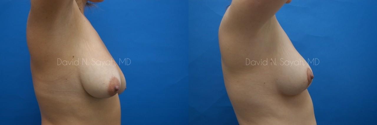 This 31-year-old woman was referred by a friend and past patient of Beverly Hills plastic surgeon Dr. David Sayah for a breast lift (mastopexy). After two pregnancies and the birth of two children, the patient was unhappy with the appearance of her breasts. During her consultation, she expressed a desire for more uplifted breasts and explained that she had noticed a progressive ptosis of her breasts after each pregnancy leaving her with what she felt were “drooping breasts.”